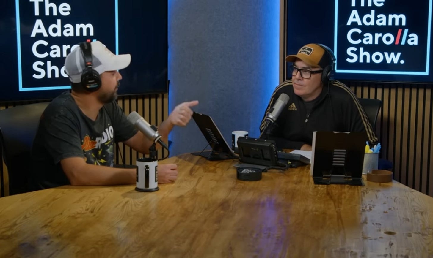 The episode is called “Dildos vs ICE Agents.” That’s the actual title. Adam Corolla, who has spent thirty years explaining to anyone who will listen that he is the smartest person in every room he has ever entered, spent his Tuesday morning podcast trying to reverse-engineer a protest movement he doesn’t understand and arriving at approximately nothing.