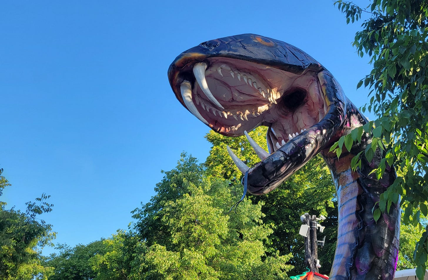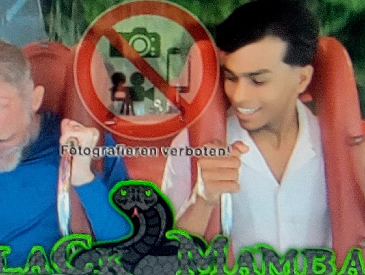 The Black Mamba doesn’t look terrifying from the ground. It looks like an overly dramatic swing set. You walk past it thinking, Sure. How bad can it be? That’s the trick. It wants you to ask that. That’s how it gets you. The line moves quickly, because no one wants to do it twice. And by the time you’re strapped in, it’s too late.
