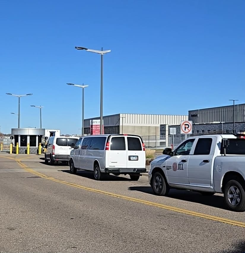 From the 7th-floor of the MSP Gold Ramp, I watched the choreography of the deportation: three black vans circling the plane’s nose like Conestoga wagons forming a white-settler defensive ring, bracing for an imaginary threat by “Savage Indians”.