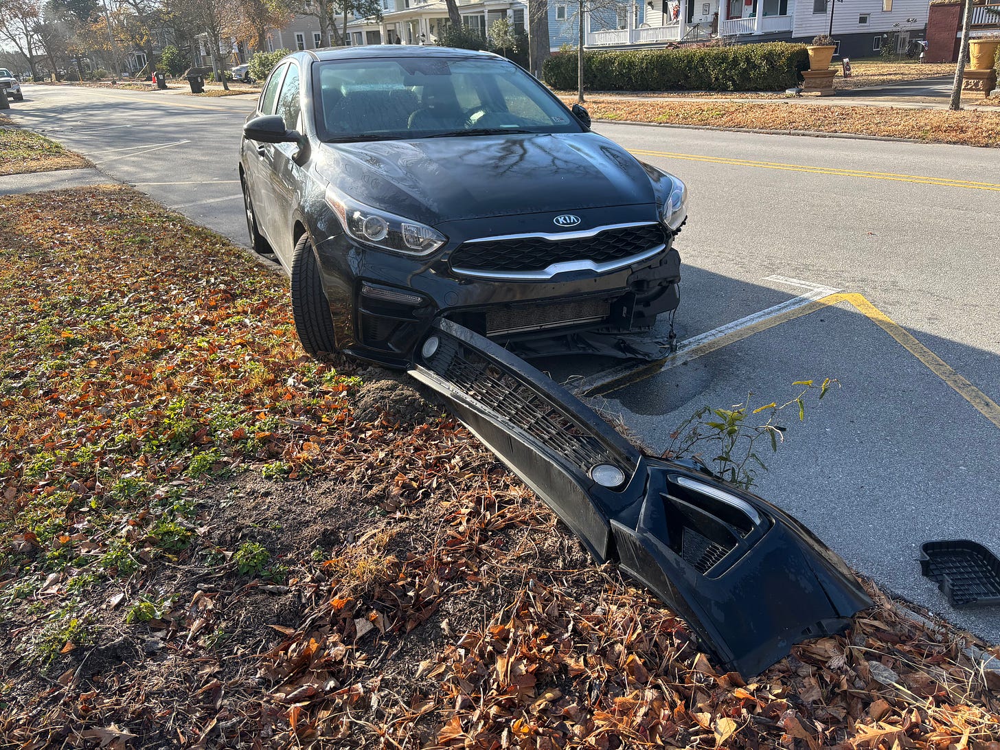 But when I got back to North Carolina after leaving the city of sin, I found my car totaled on the side of the street where I left it parked.