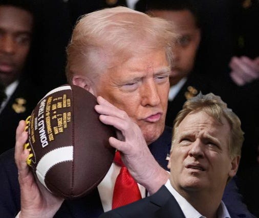 The Lombardi Trophy is hereby replaced by the Trump Eternal Victory Chalice, forged from recycled subpoenas and spray-painted optimism.