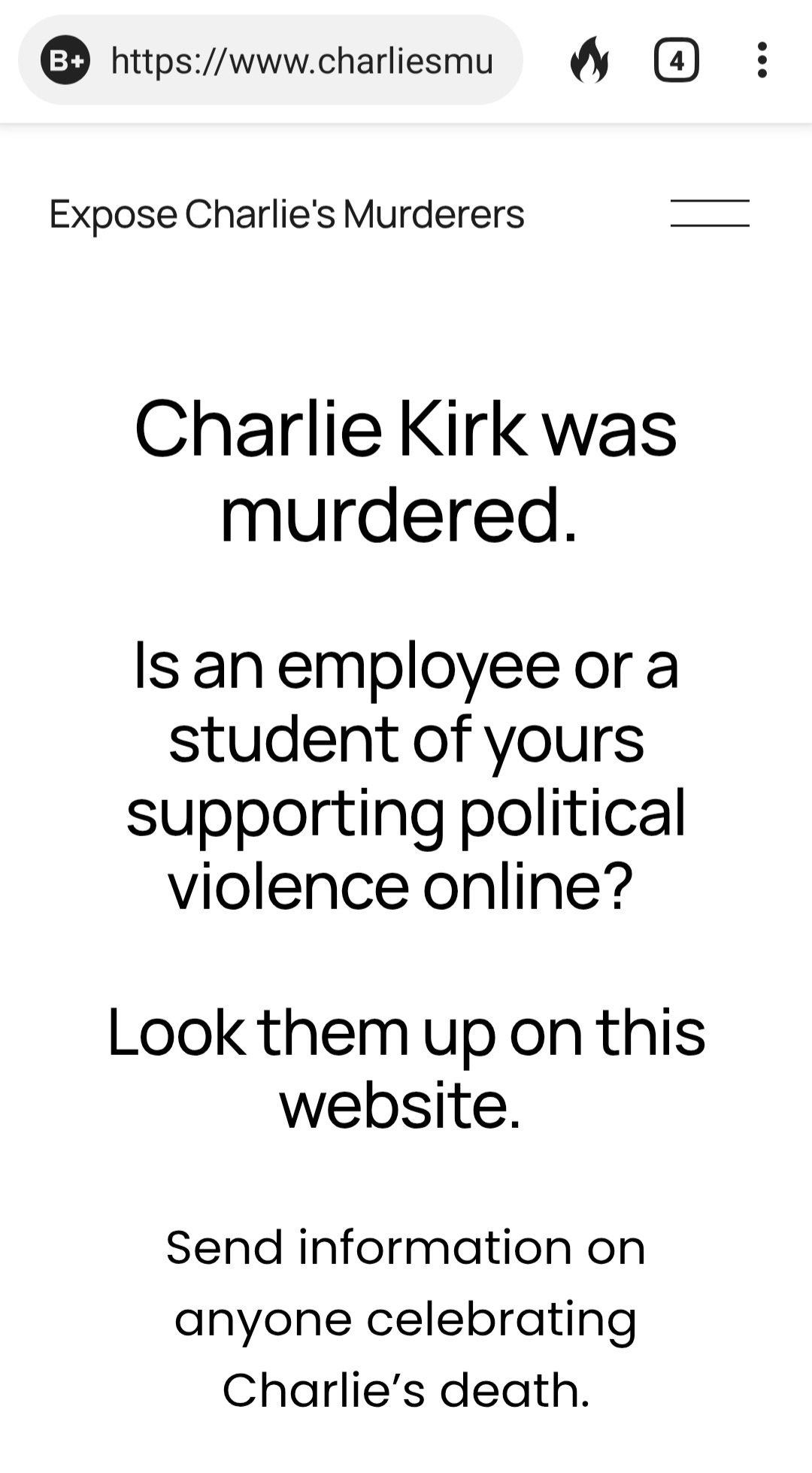 Enter the grotesque centerpiece: CharliesMurderers.com. A site so dystopian it makes J. Edgar Hoover look subtle. A searchable database of Americans whose “crime” is failing to sufficiently mourn Kirk.