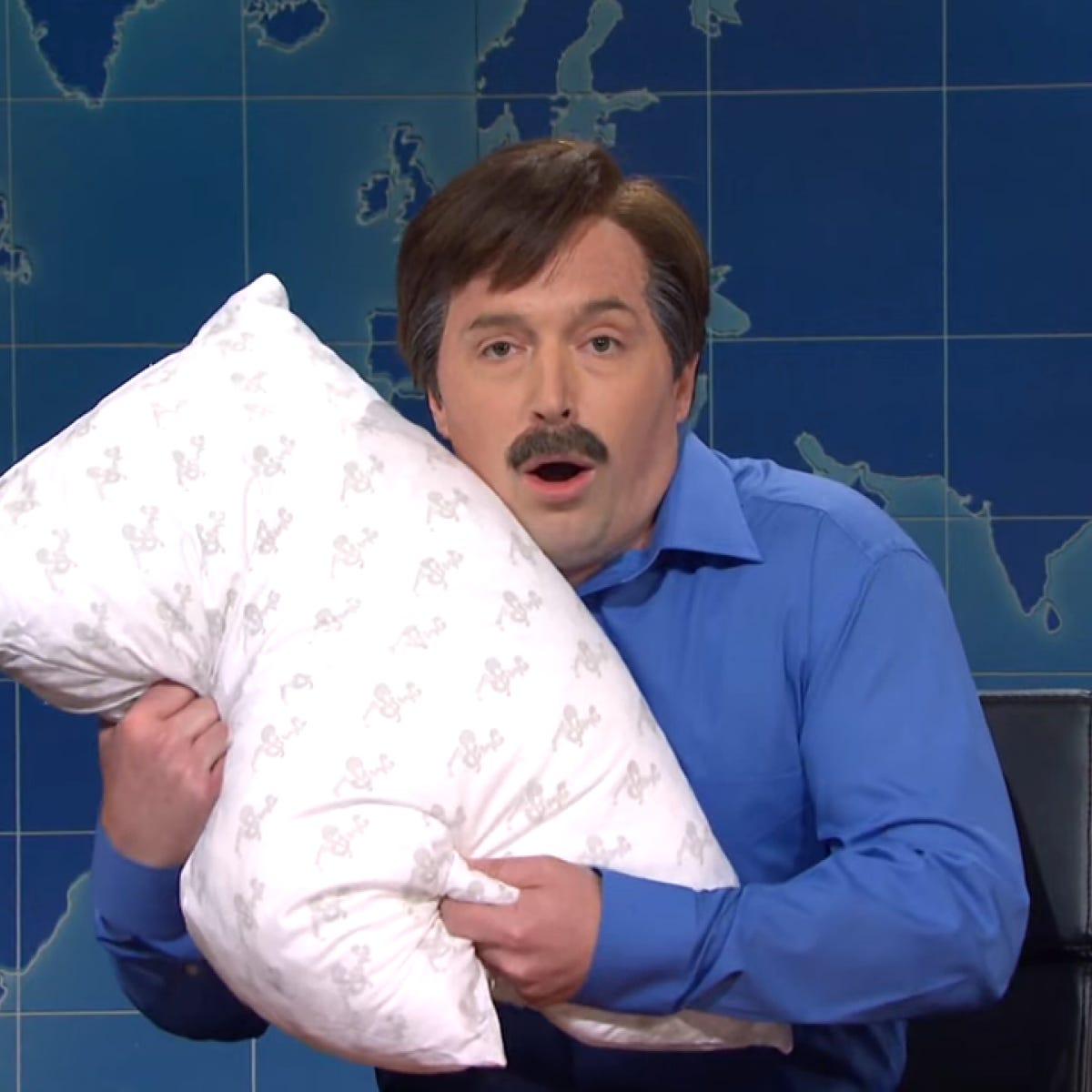 I’M TALKING PILLOWS, FOLKS. NOT JUST ANY PILLOWS — THESE ARE PATRIOTIC PILLOWS. PILLOWS THAT HAVE SEEN SOME SHIT. PILLOWS THAT WERE SMUGGLED ACROSS THE BORDER INSIDE A QANON SHAMAN’S HORNS. PILLOWS THAT SLEPT NEXT TO SIDNEY POWELL WHILE SHE DRAFTED A CONSTITUTIONAL CRISIS IN CRAYON. THEY SMELL LIKE FEAR AND LITIGATION. THEY’RE LUMPY WITH LOVE. THEY’RE FILLED WITH THE FOAM OF FREEDOM AND PROCESSED IN A FACILITY THAT’S BEEN RAIDED FOUR TIMES BY THE FEDS AND ONCE BY A SQUIRREL I MISTOOK FOR JAMES COMER.