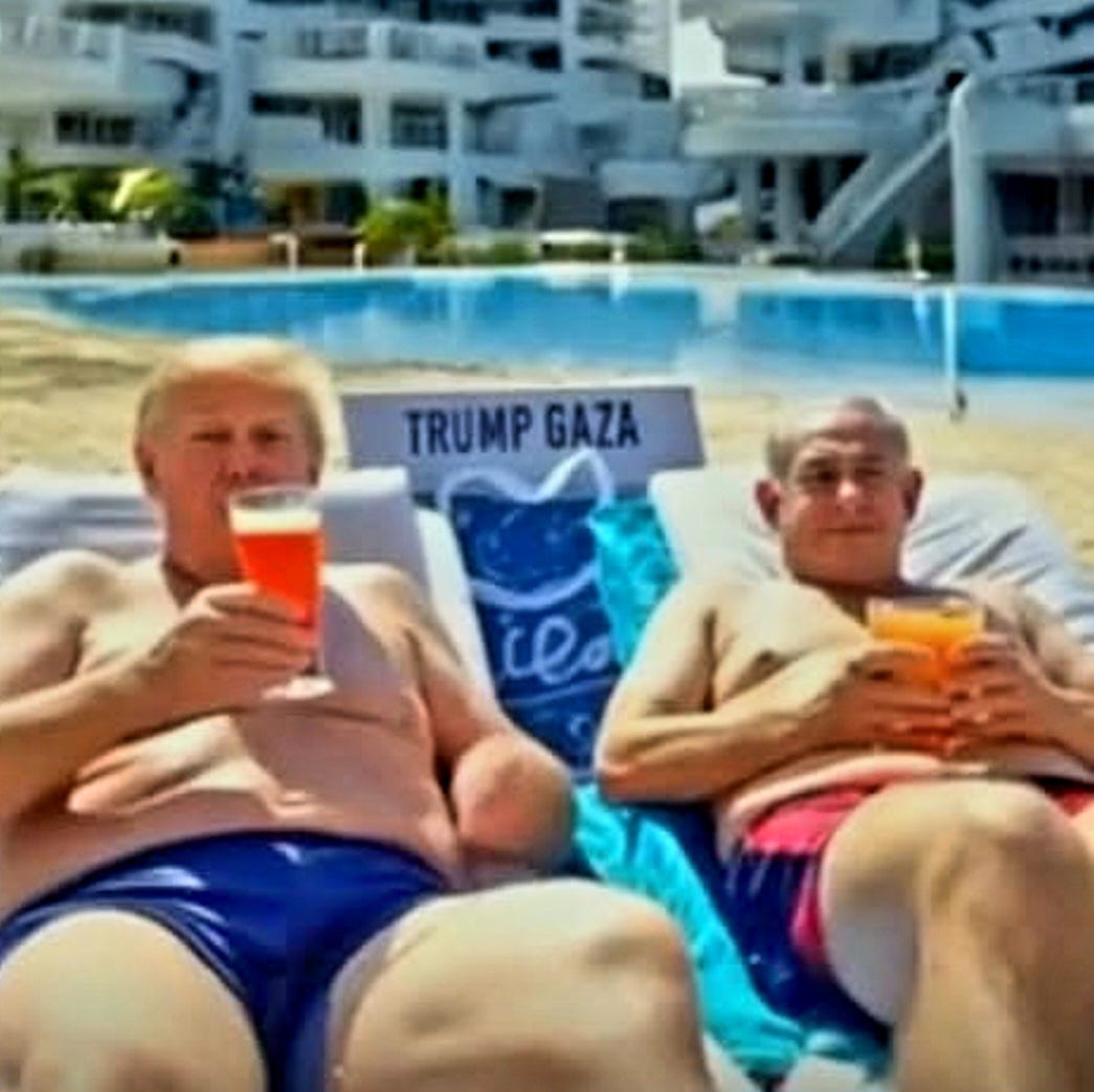 Of course, this isn’t just an AI gag. No, this insane, AI-generated hellscape is actually an extension of Trump’s real plan for Gaza—one that involves leveling the place and turning it into some Middle Eastern Vegas, conveniently without the Palestinians who currently live there.