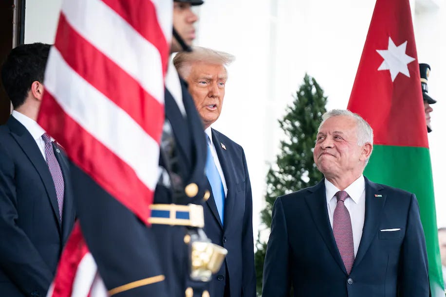 Earlier this week, King Abdullah of Jordan—one of the last men in the region clinging desperately to sanity—was ushered into the Oval Office, probably wondering what level of lunacy he was about to endure. He got his answer fast.